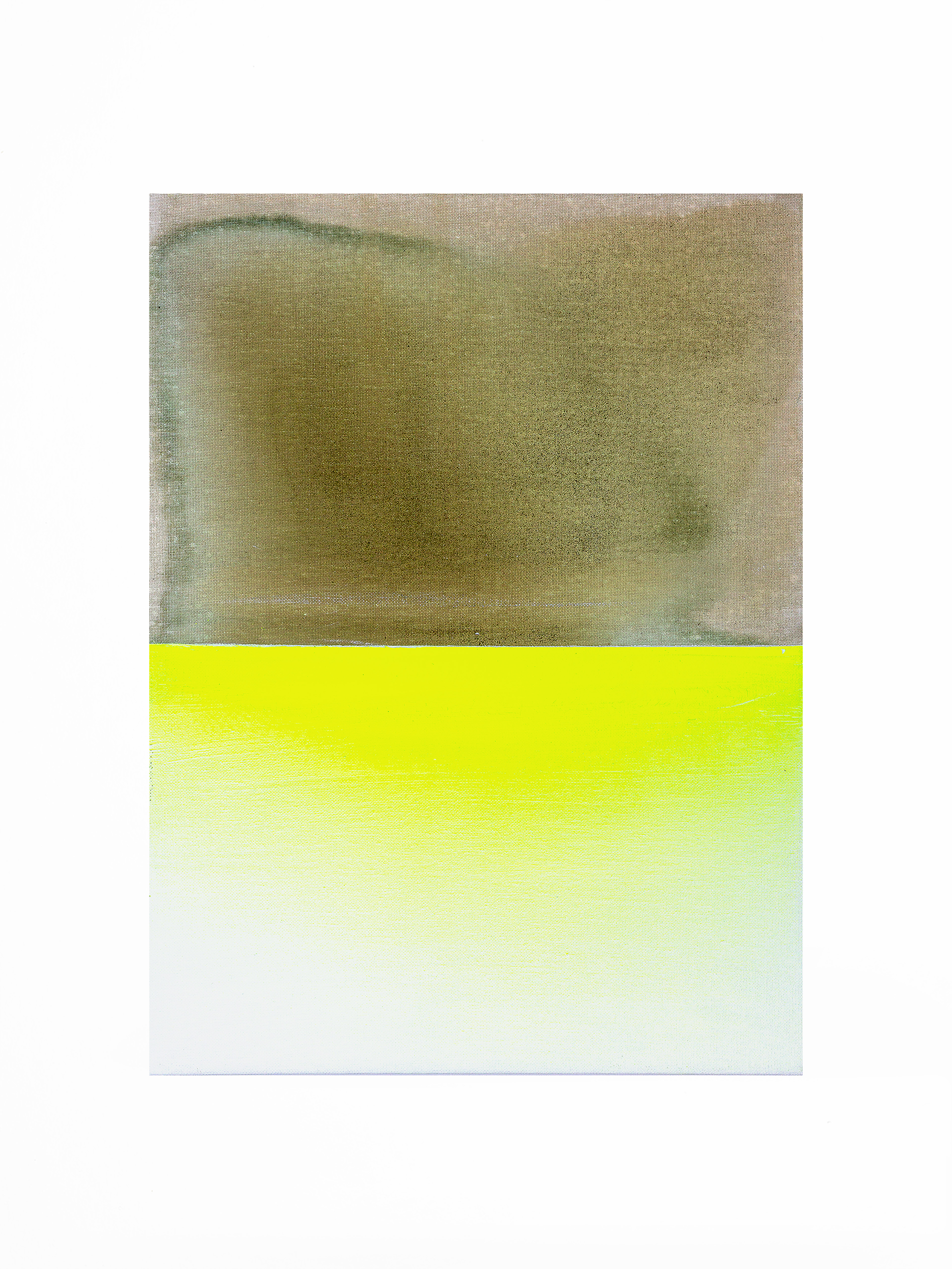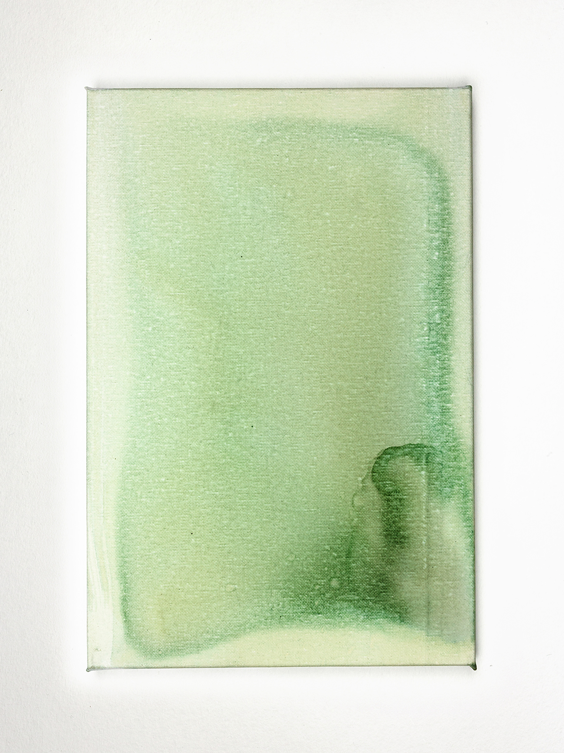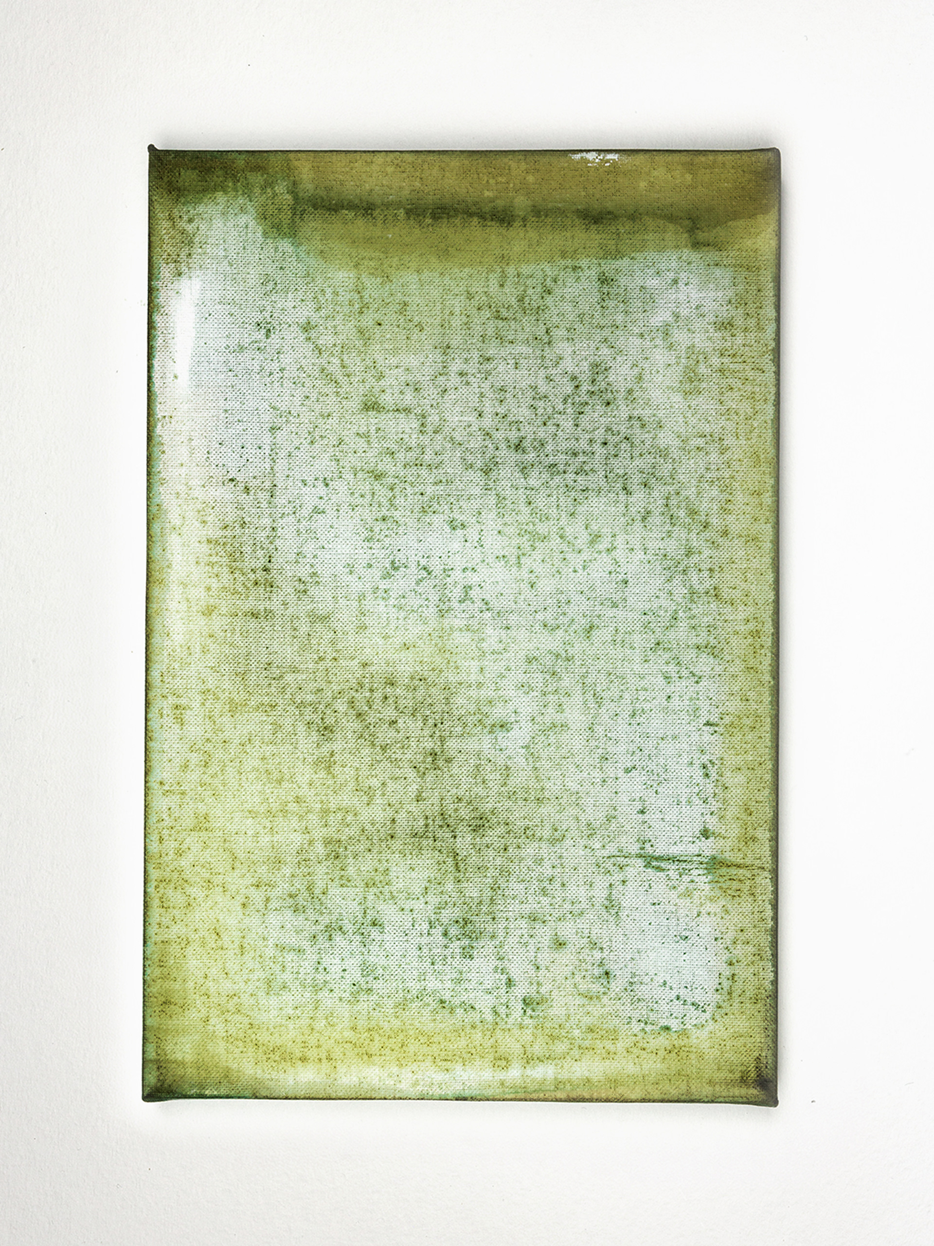 Отдельную группу составляют полотна, полностью залитые крапивной краской. Здесь исчезают знаки и жесты, уступая место цвету как среде. Эти работы функционируют как документы времени, фиксируя природную изменчивость, неравномерность высыхания, плотность и рассеивание пигмента. Художница выступает в роли свидетеля, а не автора формы.