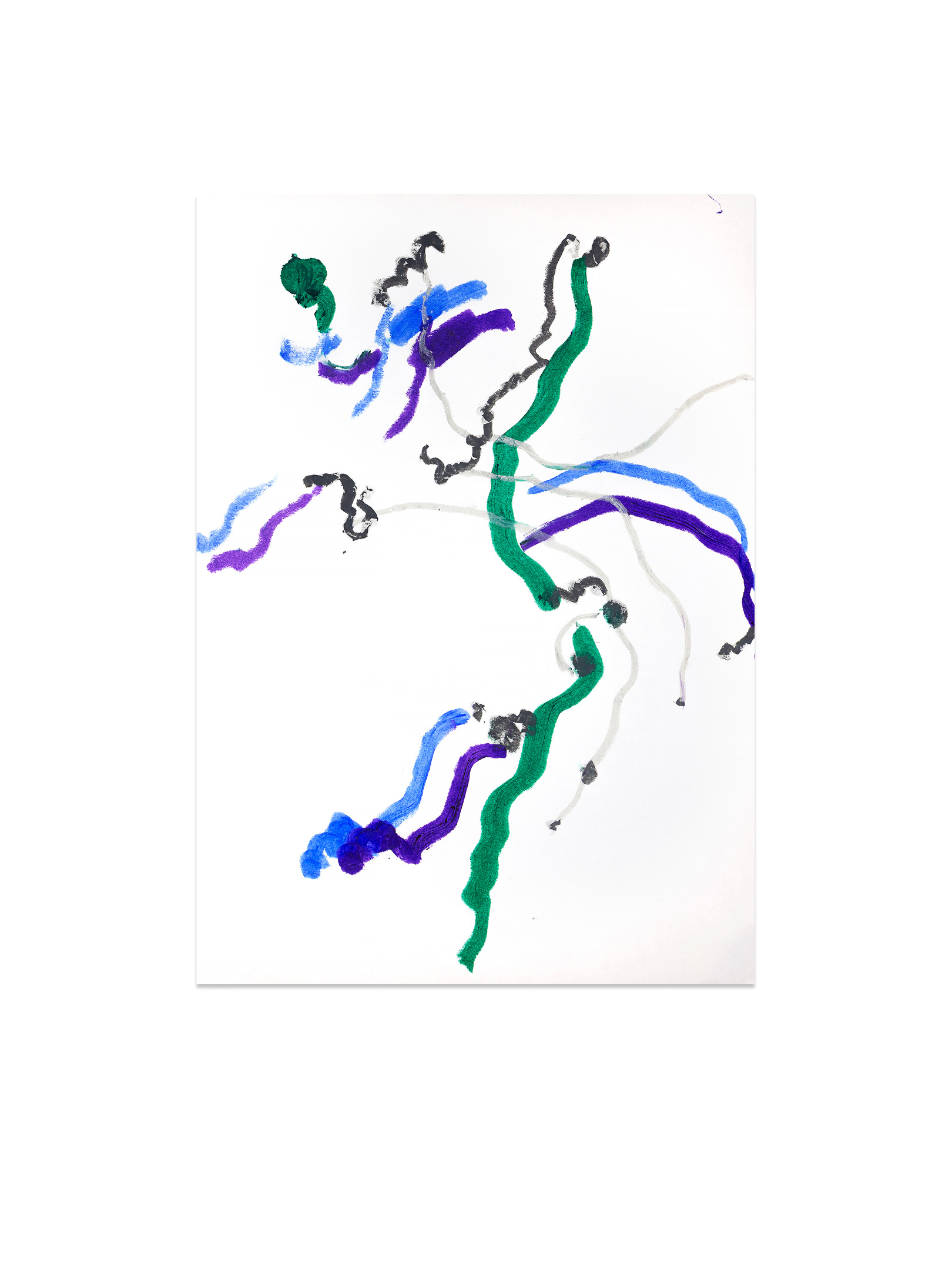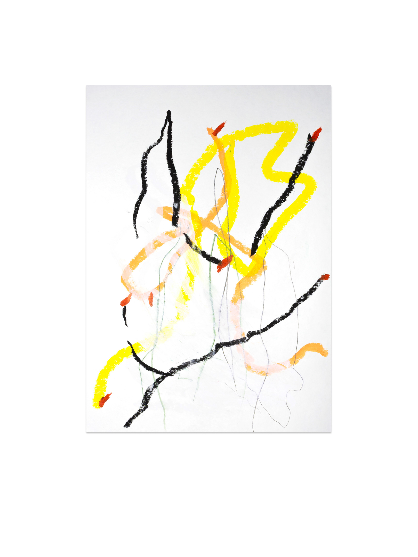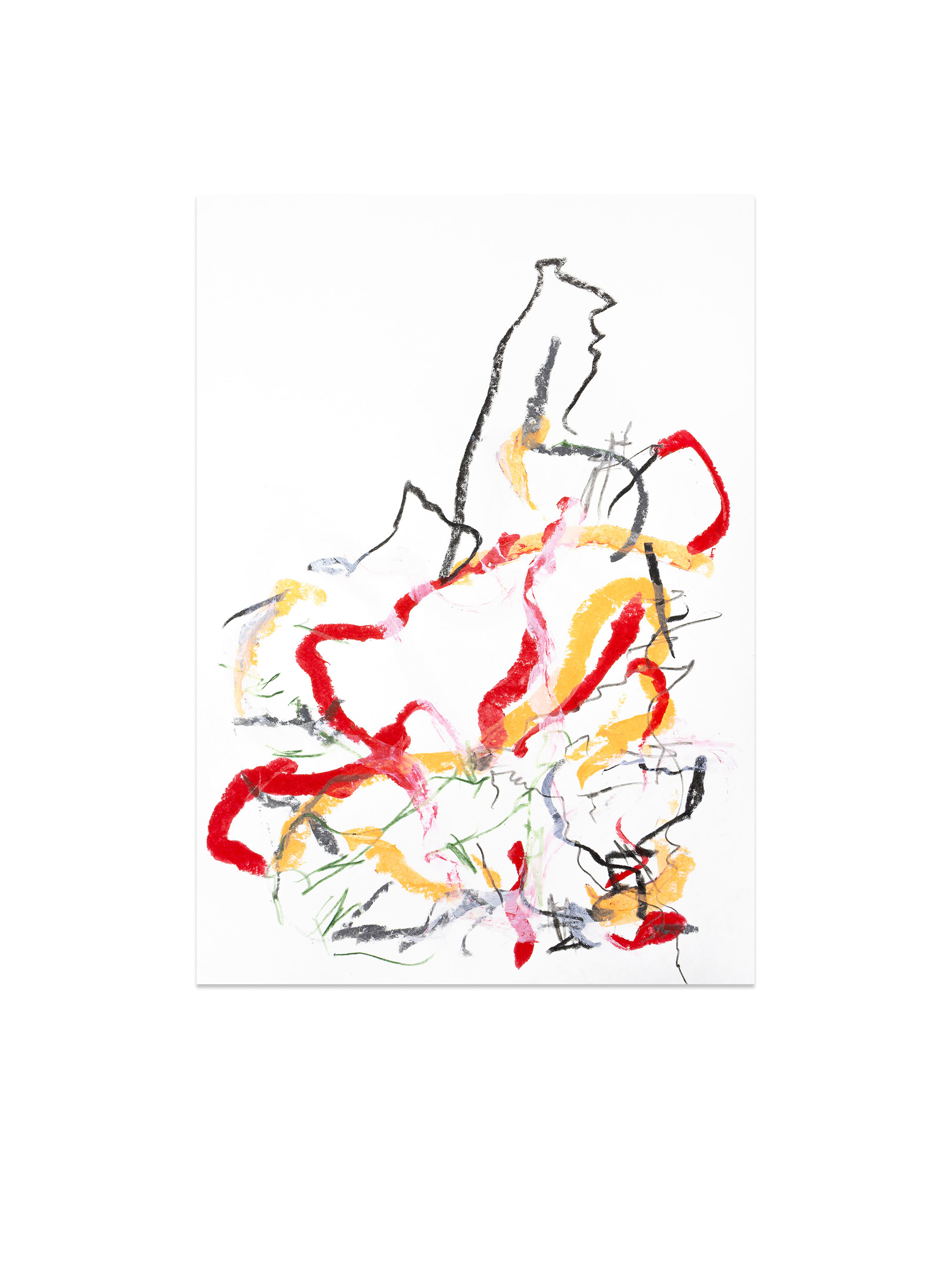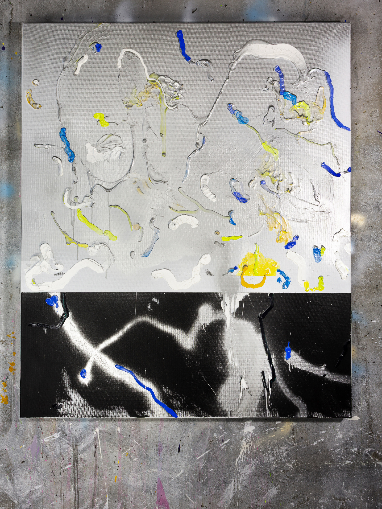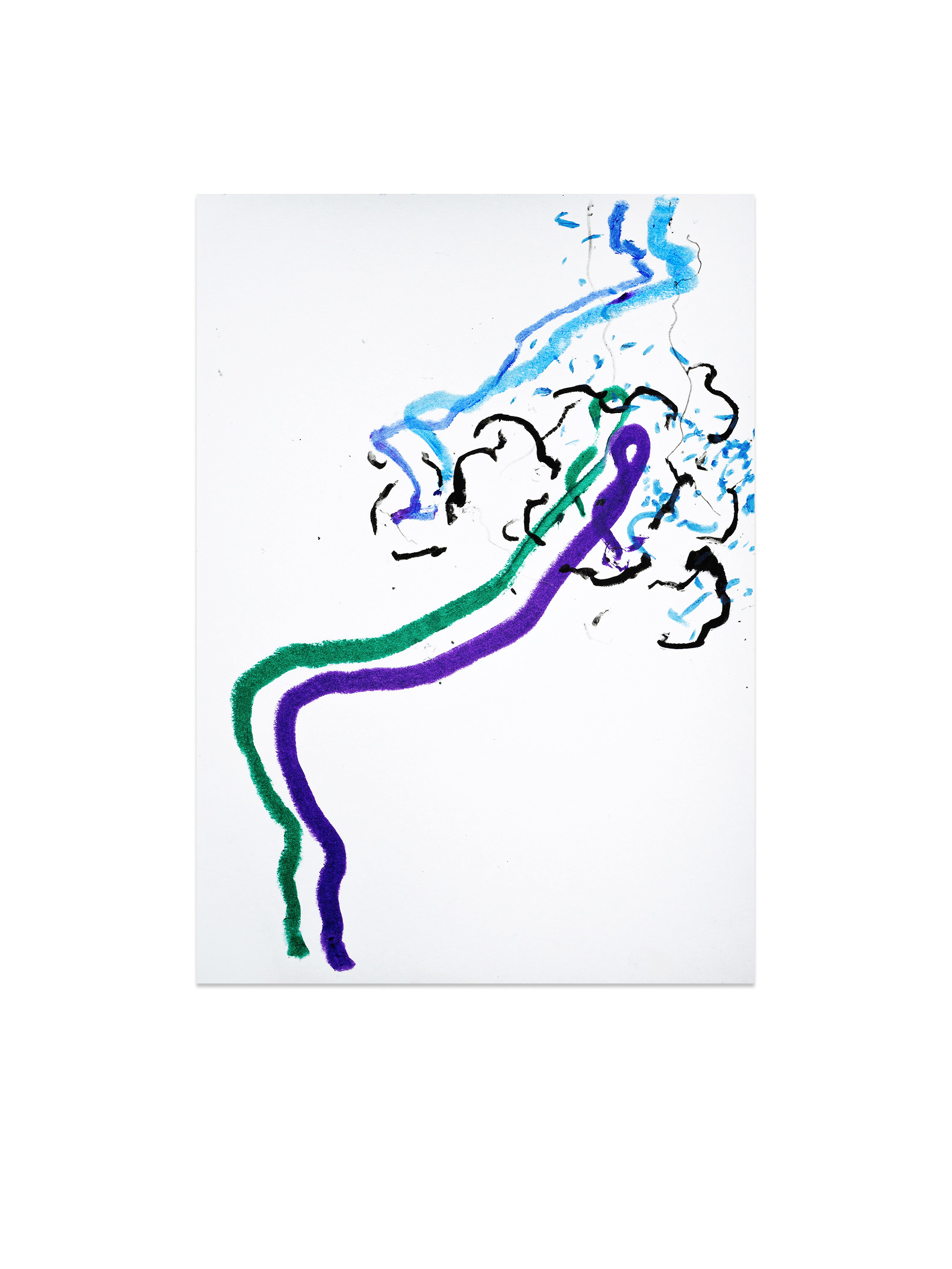 Продолжение — возвращение к пережитому опыту. В мастерской жест замедляется, появляется масштаб, и состояние удерживается уже в процессе создания крупноформатной живописи. Холст становится пространством длительного присутствия. Живопись здесь — это продолжение события.