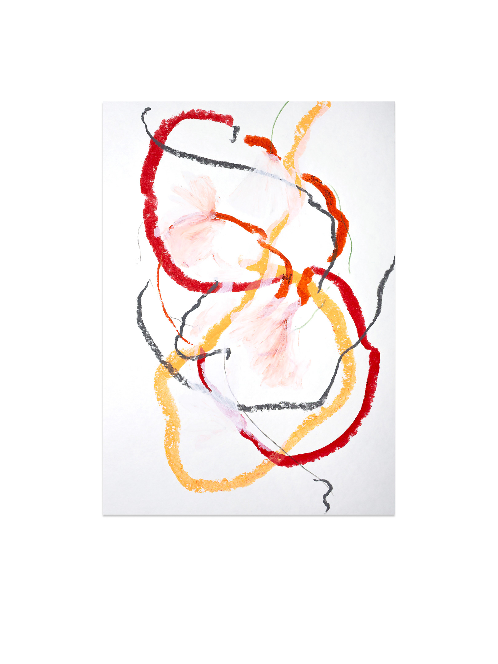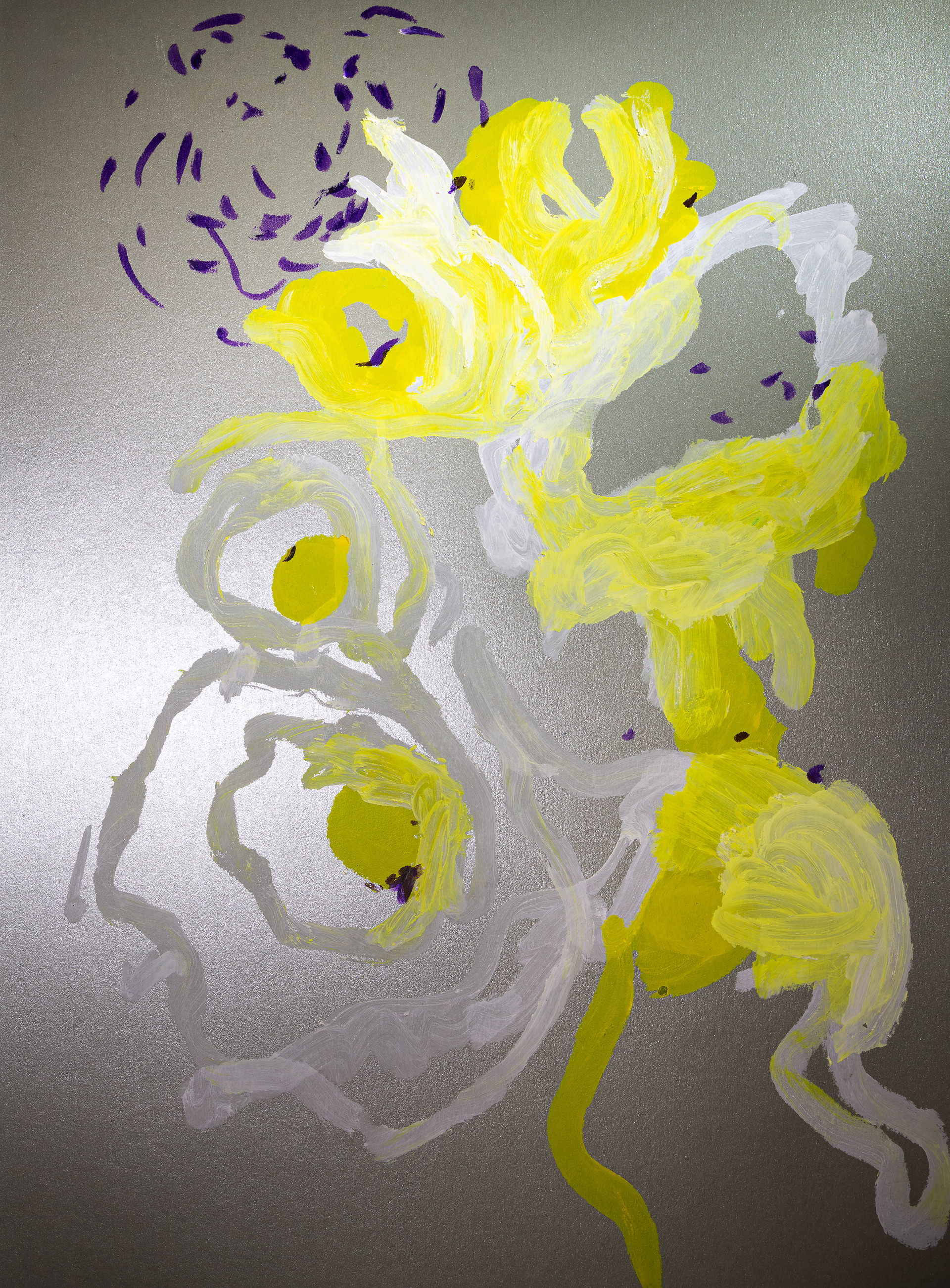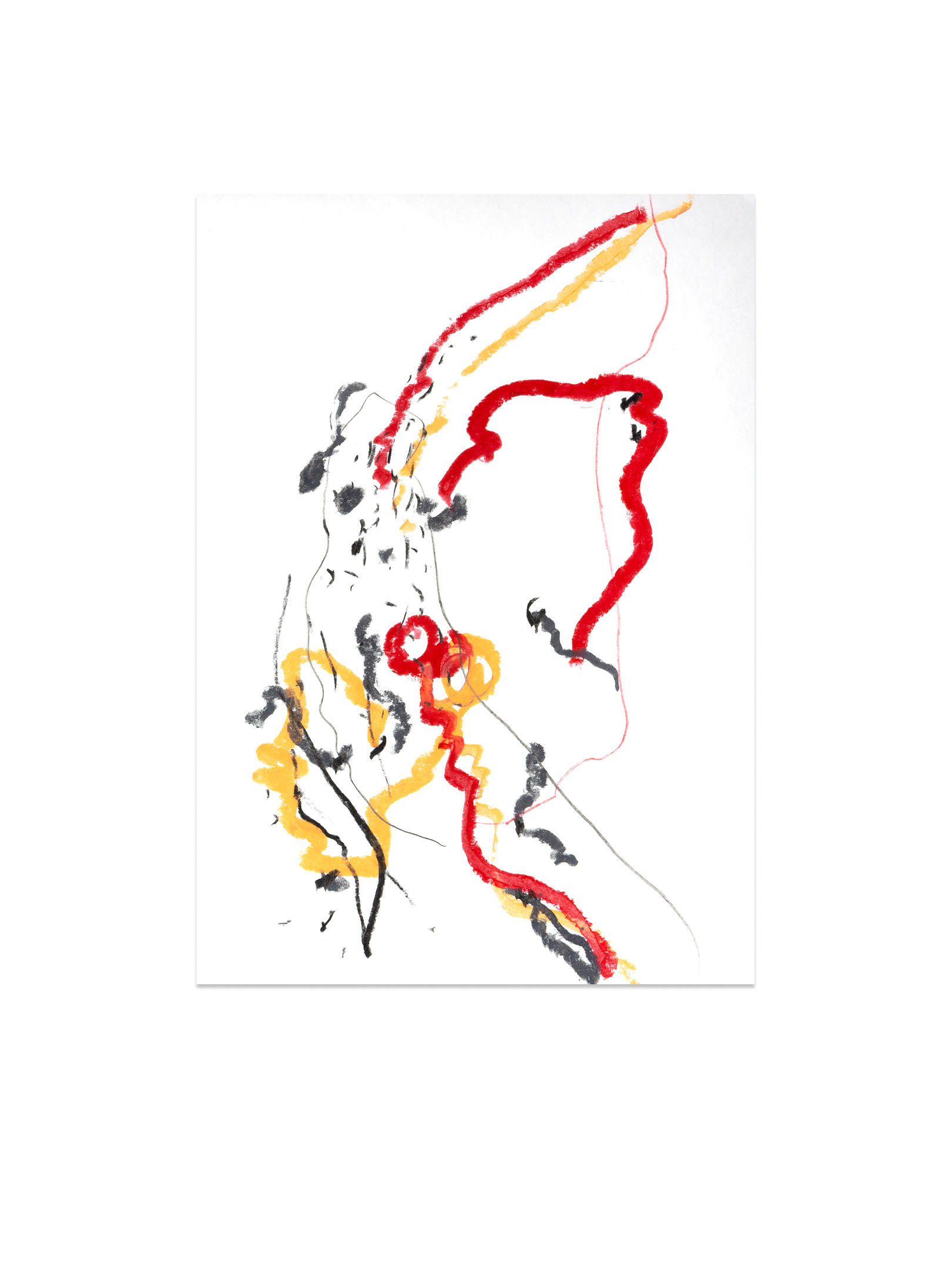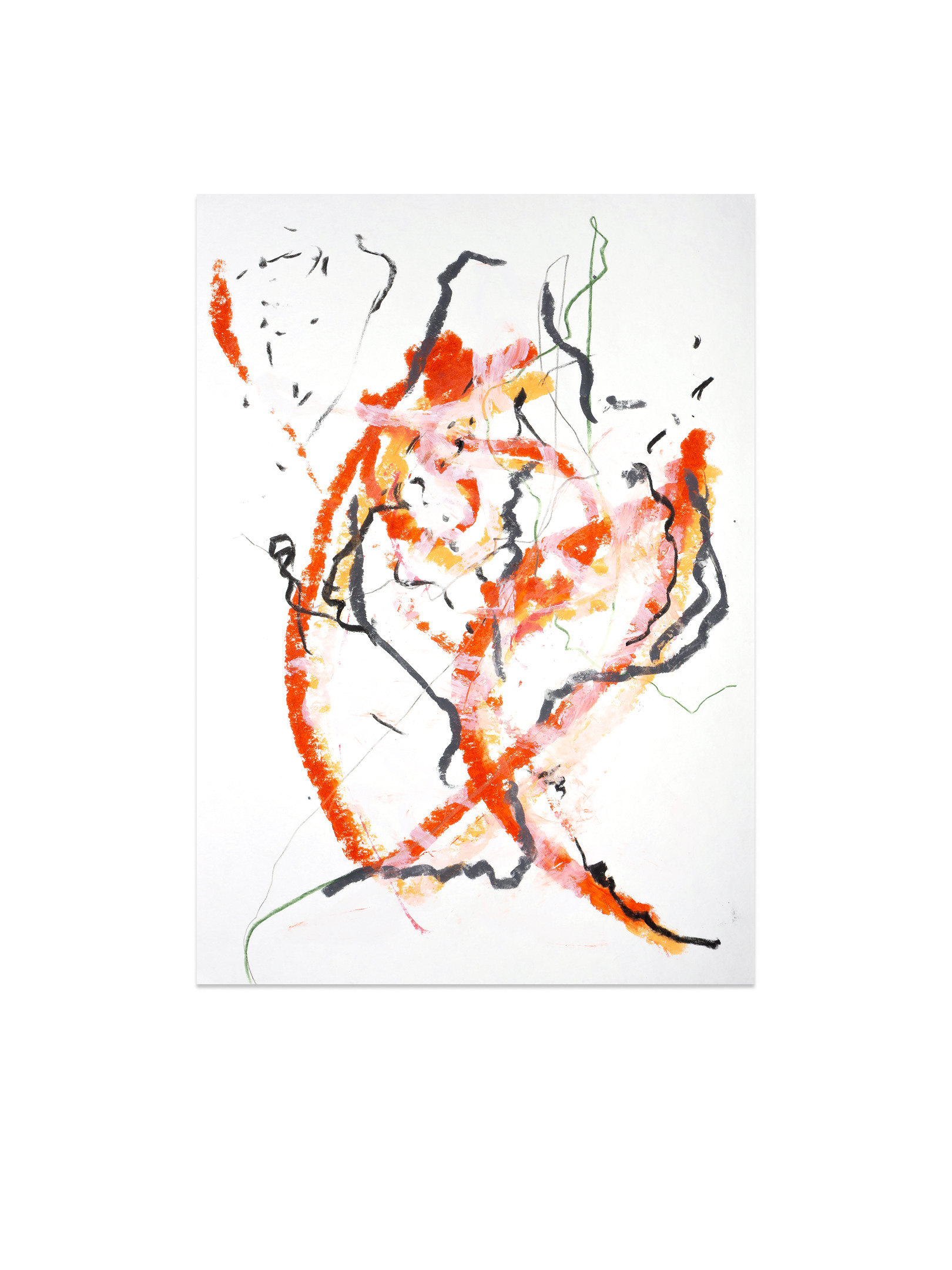 Продолжение — возвращение к пережитому опыту. В мастерской жест замедляется, появляется масштаб, и состояние удерживается уже в процессе создания крупноформатной живописи. Холст становится пространством длительного присутствия. Живопись здесь — это продолжение события.