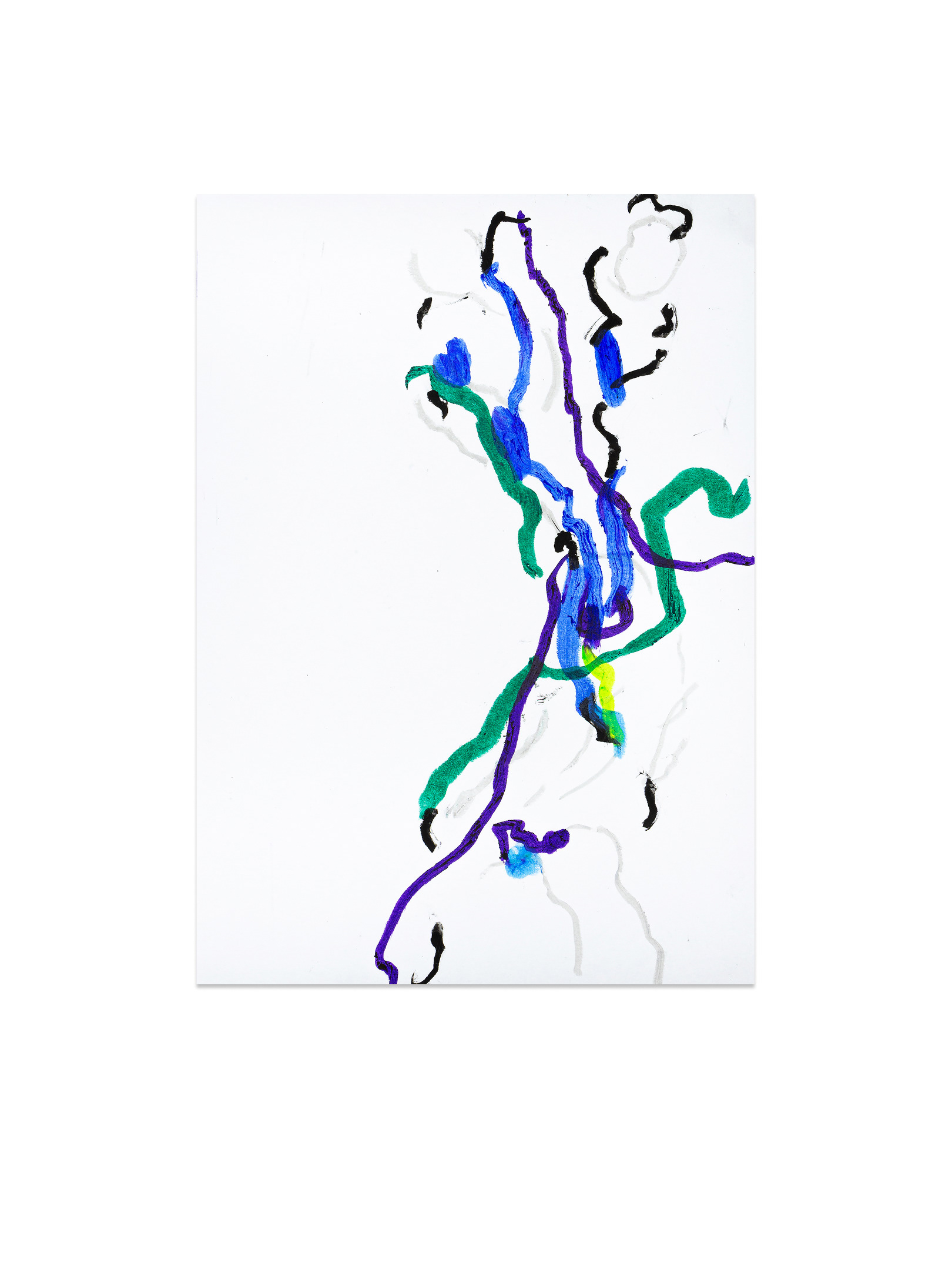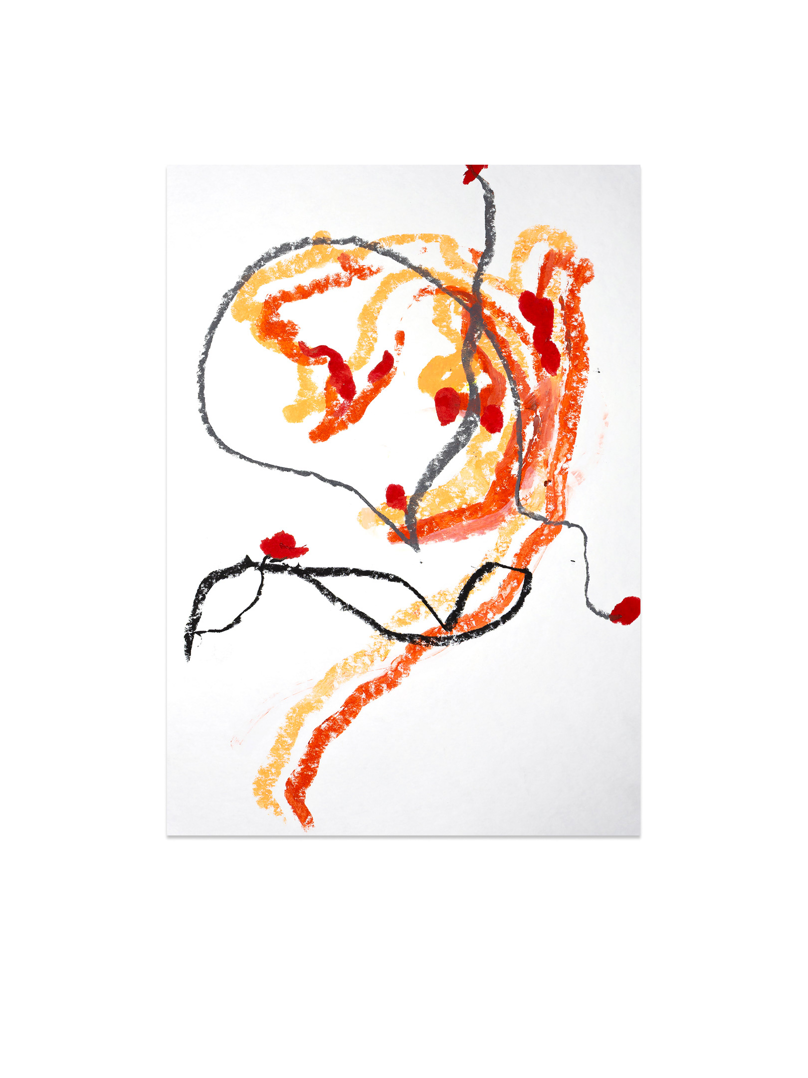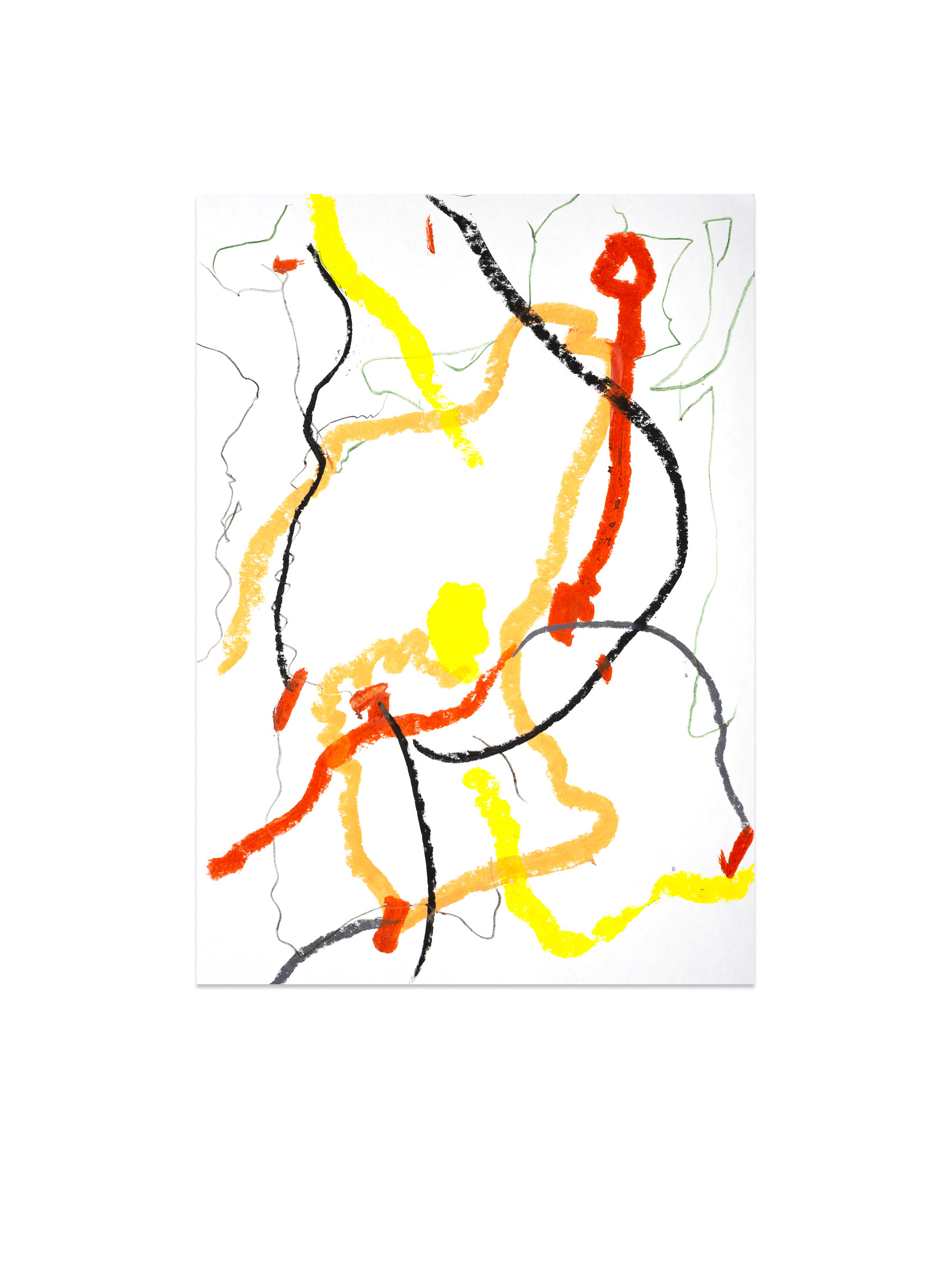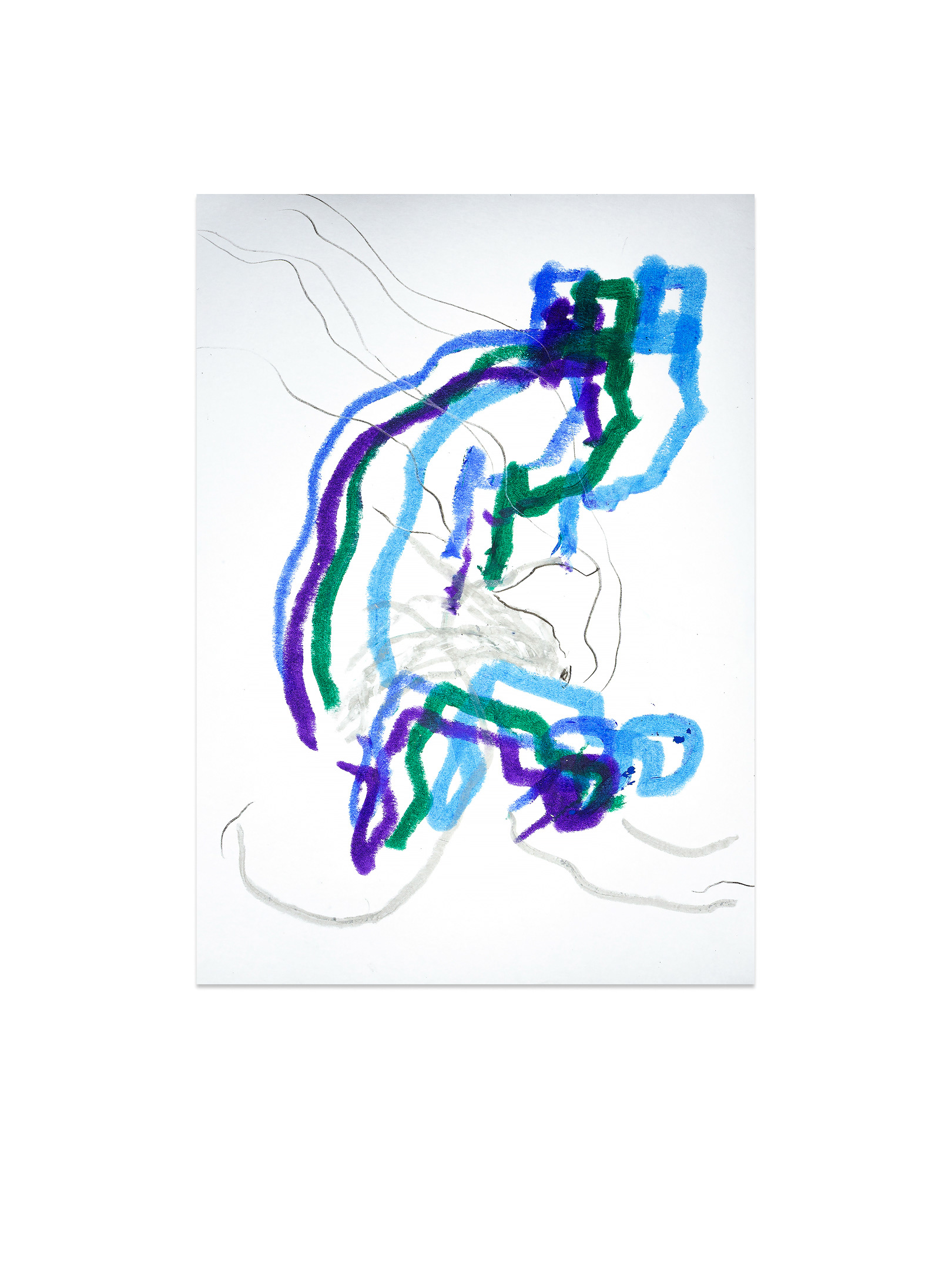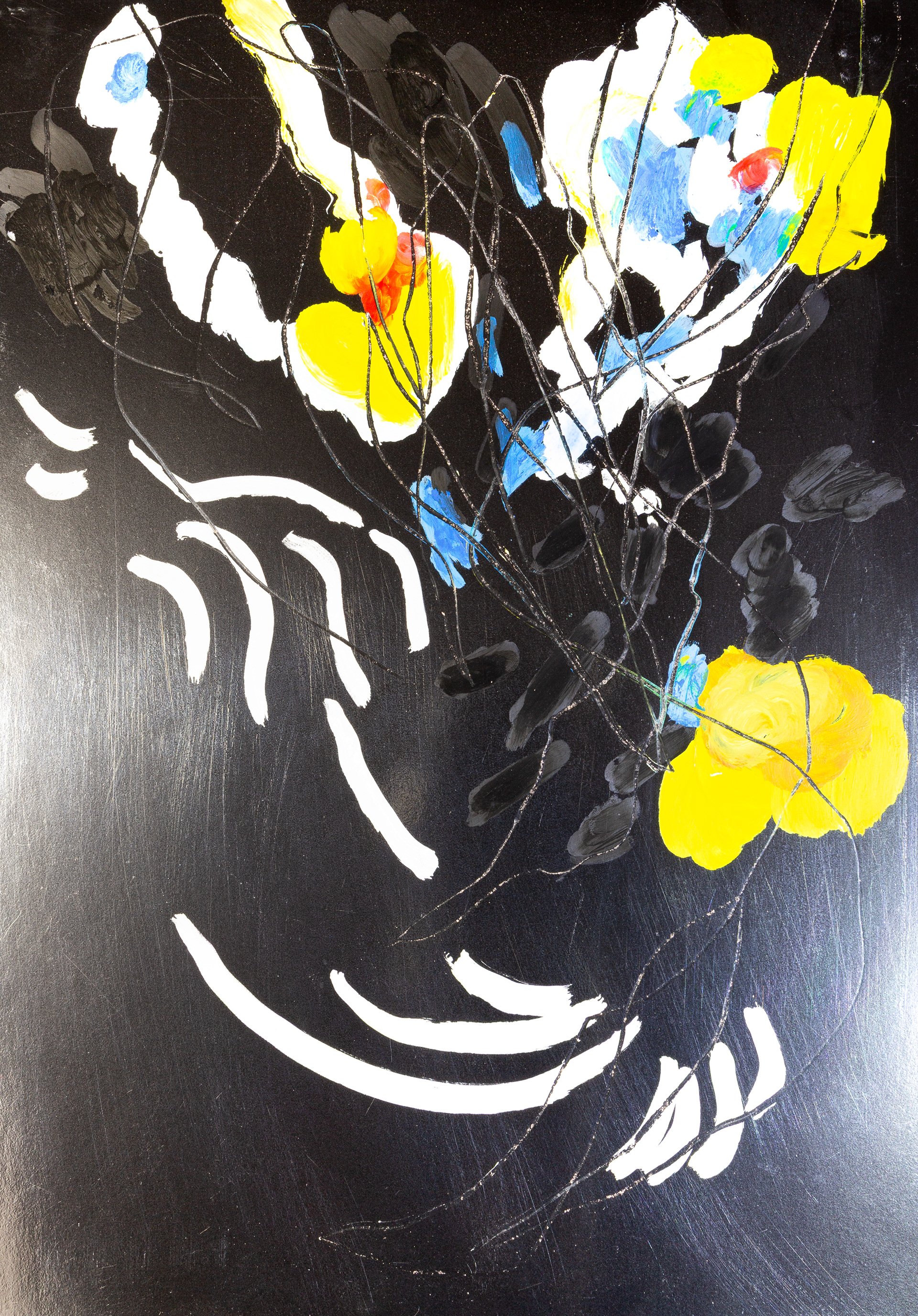 Продолжение — возвращение к пережитому опыту. В мастерской жест замедляется, появляется масштаб, и состояние удерживается уже в процессе создания крупноформатной живописи. Холст становится пространством длительного присутствия. Живопись здесь — это продолжение события.